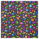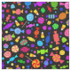 A cute pattern for Halloween featuring cartoon candy, lollipops, sweets and candy corn in a rainbow color scheme of red, orange, green, blue, bright pink, yellow and purple.