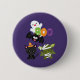 A button with a black flying bat, a green mummy bat wearing white bandages and a cute black cat with an orange witches hat. Boo written in fun colorful letters with a happy ghost floating behind.
