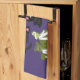 A kitchen towel with a black flying bat, a green mummy bat wearing white bandages and a cute black cat with an orange witches hat. Boo written in fun colourful letters with a happy ghost floating behind.
