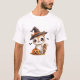 Adorable black cat wearing a witch hat sitting next to a glowing pumpkin. A perfect cozy Halloween illustration for festive designs, cards, and autumn decor.