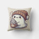 Cute Halloween Ghost in Fall Beanie & Hot Cocoa Cushion