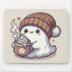 Cute Halloween Ghost in Fall Beanie & Hot Cocoa Mouse Mat