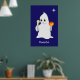 Cute Halloween Ghost & Pumpkin on Navy Blue Poster