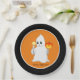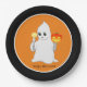 Cute Halloween Ghost & Pumpkin on Orange & Black Paper Plate