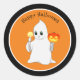 Cute Halloween Ghost & Pumpkin on Orange Classic Round Sticker