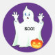 Cute Halloween Ghost & Pumpkin on Purple Classic Round Sticker