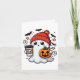 Cute Halloween Ghost With Pumpkin And Coffee Card