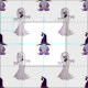 Cute Halloween gnome dressed in purple and witch hat with spider and white, spooky, scary ghosts. Created into a seamless pattern. You can change the background in the design tools.