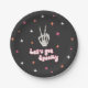 These Halloween plates feature the text Let's get spooky in a trendy retro typography and a skeleton hand giving a peace sign and starbursts in pink orange and white. Additional party favours, accessories and invitations with this same design theme are available in our zazzle store, for additional customisation send me a message