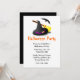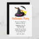 Cute custom Halloween party invitation, with simple graphics of a witch's hat, broom, and a bat, at the top of the white invitation. Personalise all the text for your Halloween bash. Suitable for adult and children parties.