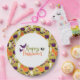 Featuring delightful hand-drawn designs, these plates showcase an adorable array of Halloween motifs on a cheerful ghoulish green background. The border is adorned with cute smiling ghosts, grinning pumpkins, playful bats, bubbling cauldrons, and magical potion bottles - all in a fun, kawaii style.