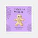 Add a touch of spooky charm to your Halloween festivities with our Trick or Treat Personalised Napkins. Design features a delightful skeleton sugar cookie set against a vibrant purple background. Each corner is adorned with black spider webs. The words "Trick or Treat" are whimsically written in a fun, Halloween-themed font. Personalise these napkins with your own text to make your event uniquely yours.