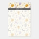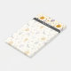 This cute Halloween pattern features a delightful mix of spooky and sweet illustrations scattered across a light beige background. The design includes playful Halloween elements such as a purple witch's hat adorned with stars, pumpkin-shaped candy, whimsical skulls and bones, and lollipops. Additional spooky touches include spiders hanging from webs, bats, tombstones, and potion bottles labelled "Magic." Small stars and polka dots fill the gaps, giving the design a cheerful and fun vibe. The soft colour palette, including purples, oranges, and yellows, adds to the charm, making this pattern perfect for a lighthearted Halloween celebration.