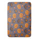 Super cute halloween pattern. In this illustration you can see pumpkins, spiders, owls, stars and candy. The pattern design is on purple polka dot background.