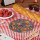 Super cute halloween pattern. In this illustration you can see pumpkins, spiders, owls, stars and candy. The pattern design is on purple polka dot background.