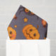 Super cute halloween pattern. In this illustration you can see pumpkins, spiders, owls, stars and candy. The pattern design is on purple polka dot background.
