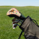 This awesome golf driver cover features a graphic image of a cute little brown rat with pink ears tail and feet. The rat is holding an orange pumpkin between its paws. There is a collection of green, purple and orange candy sweets surrounding the little rat. This design is perfect for any rat lover or owner this Halloween.