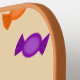 This awesome Pickleball paddle features a graphic image of a cute little brown rat with pink ears tail and feet. The rat is holding an orange pumpkin between its paws. There is a collection of green, purple and orange candy sweets surrounding the little rat. This design is perfect for any rat lover or owner this Halloween.