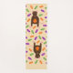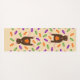 This awesome yoga mat features a graphic image of a cute little brown rat with pink ears tail and feet. The rat is holding an orange pumpkin between its paws. There is a collection of green, purple and orange candy sweets surrounding the little rat. This design is perfect for any rat lover or owner this Halloween.