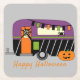 Cute retro style RV camper with Halloween decorations and customisable "Happy Halloween" text on light grey background