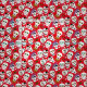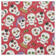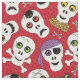 These skulls have a little bit of scary and a lot of cute! A pirate, a skull spooked by a spider, crossbones, candy corn, and colourful eyes make up the pattern on this red Halloween fabric. Original art © Anne Coffey.