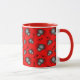This is a fun Halloween mug to enjoy your hot drinks from. The design features a pattern of spiders and splatters in on a red background. This would make a great Halloween gift for yourself or someone you know.