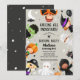 This spooky-fun invitation features a witch, Dracula, a devil, mummy, Frankenstein, skeleton, and pumpkin kid. The words "Halloween Costume Party" are written in a fun and festive font. It's the perfect way to invite your kids' friends to a spooky-sweet Halloween party where they can come dressed up as their favourite monsters.