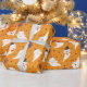 Cute Halloween Trick or Treat Ghosts with little pumpkin baskets and balloons on orange background