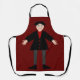 This awesome apron features a digital art image of a creepy but cute Halloween Vampire. The vampire has spiky black hair, a red shirt and black jacket with blood red heart shaped buttons on it. He has a creepy smile and long white fangs. He also has yellow fingernails, purple socks and black shoes with gold buckles on them. His arms are open welcoming you for an evil embrace.