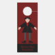 This awesome door hanger features a digital art image of a creepy but cute Halloween Vampire. The vampire has spiky black hair, a red shirt and black jacket with blood red heart shaped buttons on it. He has a creepy smile and long white fangs. He also has yellow fingernails, purple socks and black shoes with gold buckles on them. His arms are open welcoming you for an evil embrace. There is custom text on the front and back so you can turn it round to let everyone know if you are busy or available.