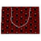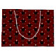 This awesome patterned gift bag features a digital art image of a creepy but cute Halloween Vampire. The vampire has spiky black hair, a red shirt and black jacket with blood red heart shaped buttons on it. He has a creepy smile and long white fangs. He also has yellow fingernails, purple socks and black shoes with gold buckles on them. His arms are open welcoming you for an evil embrace.