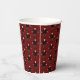 This awesome set of patterned Halloween Party paper cups features a digital art image of a creepy but cute Halloween Vampire. The vampire has spiky black hair, a red shirt and black jacket with blood red heart shaped buttons on it. He has a creepy smile and long white fangs. He also has yellow fingernails, purple socks and black shoes with gold buckles on them. His arms are open welcoming you for an evil embrace.