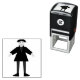 This awesome self inking stamp features a digital art image of a creepy but cute Halloween Vampire. The vampire has spiky black hair, a red shirt and black jacket with blood red heart shaped buttons on it. He has a creepy smile and long white fangs. He also has yellow fingernails, purple socks and black shoes with gold buckles on them. His arms are open welcoming you for an evil embrace.