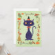 A magical, black cat, dons a pointed witch's hat surrounded by fall floral delicately placed against a mint green background. Twinkle Spice is the good witch's cat. She likes to play in the pumpkin patch at Little Paper Farm and frolic in all of Autumn's splendour. Original illustration by Noël Snow.