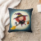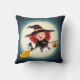 Cute Halloween Witch on Broom with Cat and Pumpkin Cushion