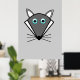 This poster features a kawaii style cartoon of a cute grey Halloween Wolf with pointed ears, bright blue eyes and black nose surrounded by whiskers. This cute wolf is perfect for Halloween or for animal lovers.