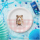 These paper plates feature an adorable hamster with a muffin on a charming pink gingham check background, perfect for adding a playful touch to your party. Delight your guests with these cute and whimsical paper plates, ideal for any celebration or casual get-together.