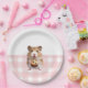 Cute Hamster With Muffin Pink Gingham Check Paper Plate