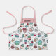 Cute personalized apron featuring a hand drawn pattern of cupcakes with frosting and decorated with sprinkles, berries, and fruit in lovely pastel colors. Add your name or your child's name against pink, surrounded by cute stars.