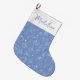 Add a touch of handcrafted charm to your holiday traditions with this adorable personalised stocking. The design is covered in cute, whimsical sketches of all things winter, from reindeer and snowmen to cosy mittens and hot cocoa. The soft blue and white colour scheme offers a fresh, modern take on classic holiday decor. Perfect for the whole family, this stocking can be customised with your loved one's name, making it a treasured piece for years to come.