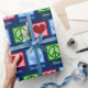 Peace Love Hanukkah wrapping paper in dark blue for a Jewish person who likes to celebrate Chanukah. A pretty peace sign, heart, and a beautiful menorah in a cute pattern for the holiday.
