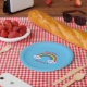 This cute rainbow 1st birthday blue party plate will surely make a one year old smile. The theme can used for a baby boy or baby girl. Enjoy personalising your name and age.