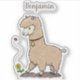 This cute alpaca is making friends with a pink butterfly. A happy and adorable cartoon for child.