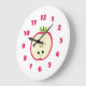 Cute and stylish large clock featuring an adorable kawaii smiling apple framed by bright red numbers in a casual, modern typeface. This sweet design is perfect for adding a fun style to nursery and kids' rooms and an excellent gift for foodies and fruit lovers.