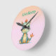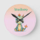 Cute Happy Baby Dragon round clock featuring a cute little watercolor dragon sitting down with a butterfly on his nose. It can be personalised, just change the name. If you need assistance drop me a message with the name you want to put on and what colour you would like it in. This clock is best suited to a baby nursery or child bedroom.
