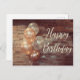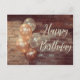 This fun post card is a picture of rose gold balloons with a brick background. And it says Happy Birthday!