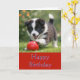 This dog lovers birthday card features a puppy border collie playing with a red ball. The card has a Happy Birthday on the front and an inside message. A template design that you can edit to add your own words or image. "AI-generated artwork with design direction by Susang6"