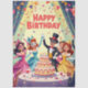 Cute Happy birthday masquerade theme with balloons, cake and confetti.