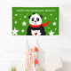Celebrate your child's first birthdays with this whimsical banner, which features a cute baby giant panda sporting a bowler hat, red scarf, and a heart tattooed on its belly rendered on a starry, kelly green background!