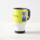 Cute Happy Blue Smiling Cat Personalised Yellow Travel Mug